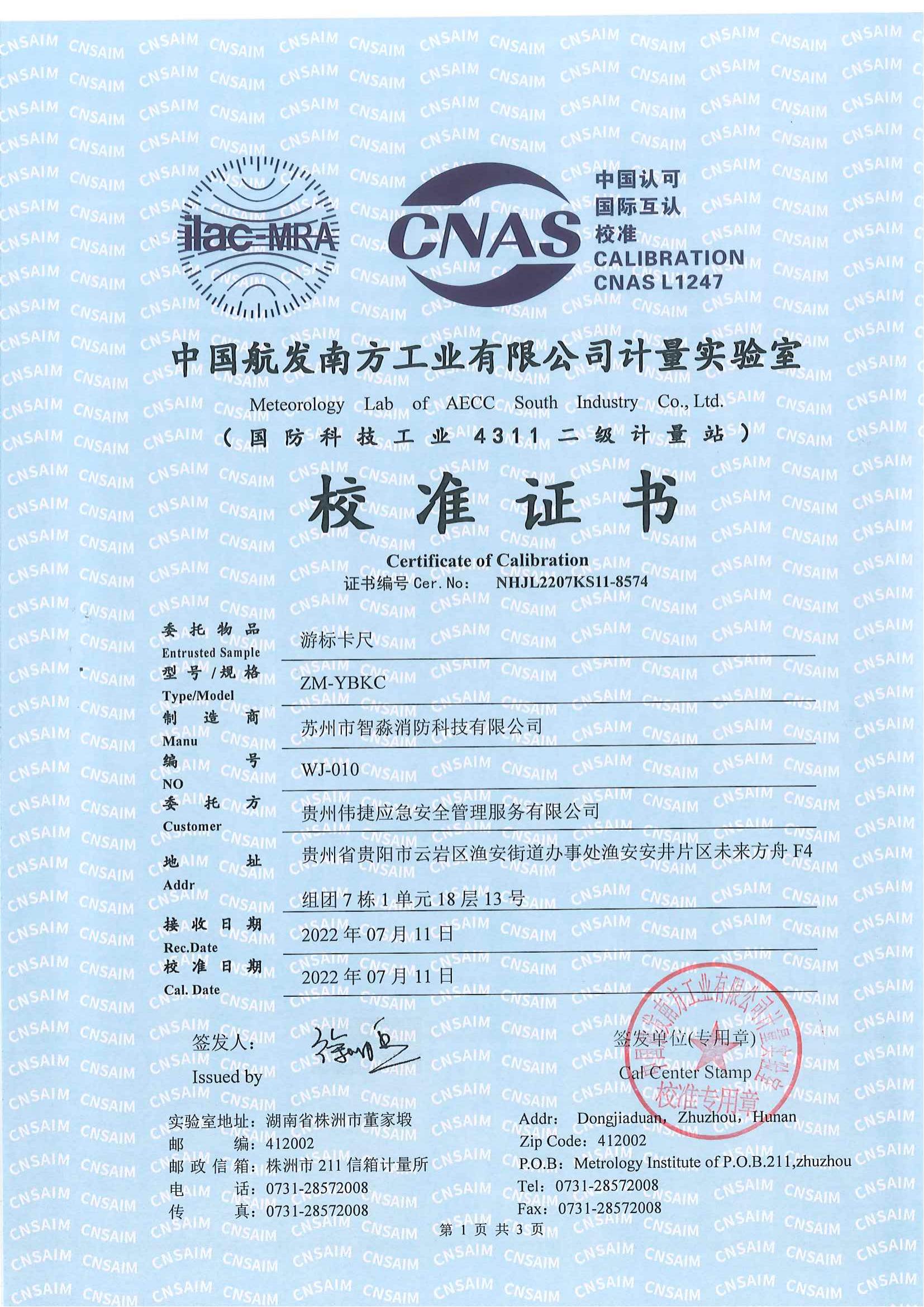 長沙游標卡尺校準報告,游標卡尺校準證書
