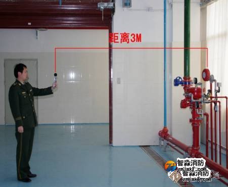 2.用聲級計測量報警閥動作后,距水力警鈴3m處聲壓級不低于70dB,圖3-2。