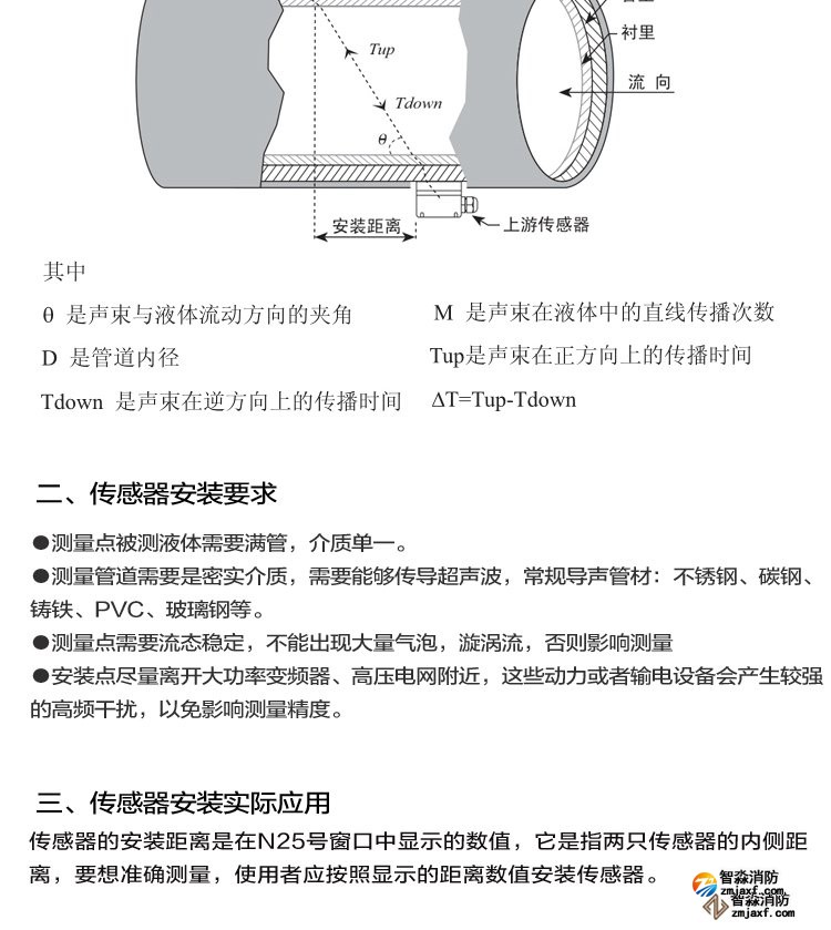 超聲波流量計測量管徑范圍:0mm~300mm;WWW.XFJCYQ.COM精度:±1%用于檢測消火栓系統和水噴淋系統的給水量以及消防豎管的流量分配。