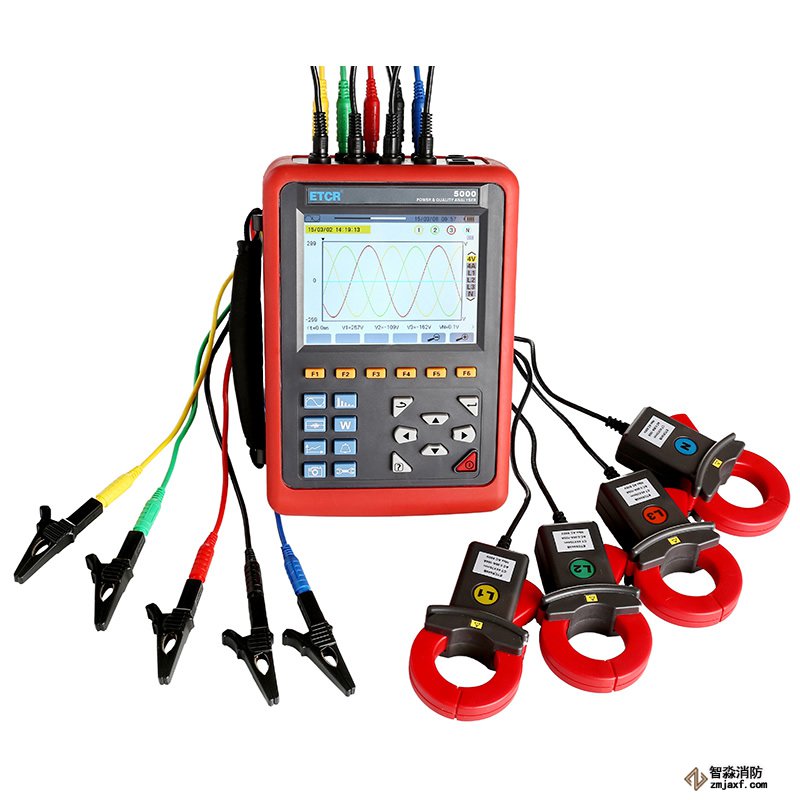 ETCR5000電能質量分析儀是我公司精心研制的一款專為現(xiàn)場測試的三相、多功能、智能化、人機操作簡潔的綜合型測試儀器。具有容易使用,超大液晶彩屏顯示,高分辨率,中英文雙語操作界面,防振結構外殼等特點。可同時測量4路電流(ABC三相及中性線電流),4路電壓(ABC三相電壓及中性線對地電壓)、電流電壓的峰值、一段時間內的蕞大蕞小值、三相不平衡度、短時電壓閃變、變壓器K因數(shù)、有功功率、無功功率、視在功率、功率因數(shù)、位移功率因數(shù)、有功電能、無功電能、視在電能、諧波比、總諧波失真度等;顯示電流電壓的實時波形、相量圖、諧波比柱形圖;動態(tài)捕捉電壓電流瞬時變化,監(jiān)測啟動電流,監(jiān)測各電力參數(shù)并生成告警列表,長時間記錄測試數(shù)據(jù)并生成趨勢曲線圖等功能。