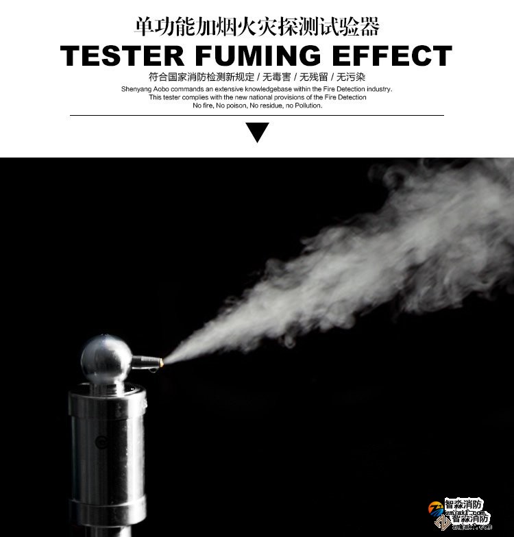 該產品由于采用特制的霧香液電子霧化技術,發出的煙霧有各種香味且綠色環保,無毒無害。根據火災探測器倒掛在頂棚上的狀況,為避免加煙后煙霧長時間滯留在火災探測器迷宮內,特制霧香液霧化成煙后的比重大于空氣比重,加煙試驗后短時間內能在迷宮內快速消失,有利于提高試驗工作效率。電子霧化發煙代替原有的傳統的棒香加煙方式,不僅加煙方式有了進一步的升華而且煙霧中不含煙塵煙油,可避免棒香加煙所產生的煙塵煙油對火災探測器造成二次污染。同時由于該產品采用了內部霧香液循環技術,降低霧香液的自然損耗,延長了霧香液使用時間,耗材使用成本隨之減少。
