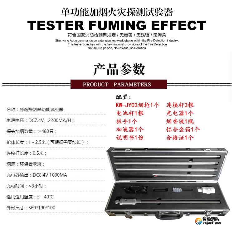 ZM-Y感煙探測器功能試驗器是4+2全功能火災探測器試驗器的子產品,利用物理學和化學原理控制和轉換技術,采用環保型霧香液通過電子能量轉換,將液體釋放哦顆粒煙霧,取代并淘汰了傳統的棒香發煙方式,發出的煙霧無明火、無煙灰、無煙油,對探頭無二次污染。以其結構緊湊,外形精美,攜帶方便,組裝簡單,操作靈活,槍體輕便,性價比高等受到廣大用戶的青睞。全結構為不銹鋼設計,鋁合金箱包裝,可對感煙類(各種型號的離子、光電及復合類煙感探測器)火災探測器進行維護、檢測、調試、驗收、靈敏度試驗。是哈爾濱消防檢測、消防工程及使用火災報警系統的單位輔助工具。