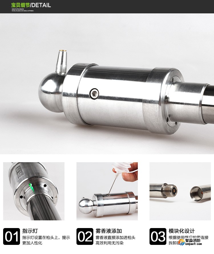 3、連接:根據高度適當選取連接桿數量,然后將槍頭、連接桿、電池桿按順時針的方向轉連接。拆卸按相反的方向操作。